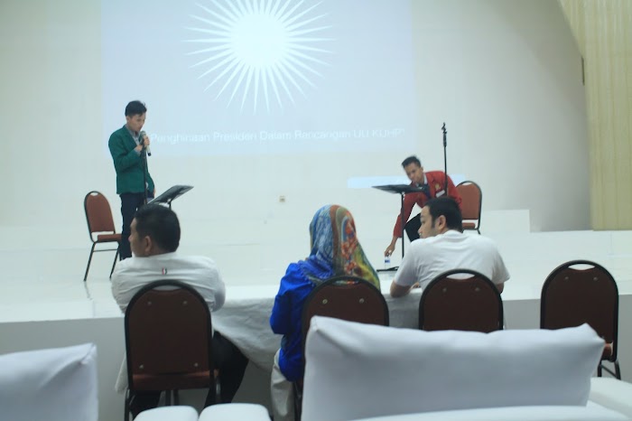 | Jhon Miduk Sitorus sedang beradu argumen dengan Okky Fauzy dalam Lomba Debat mahasiswa nasional HUT PAN 2015 |